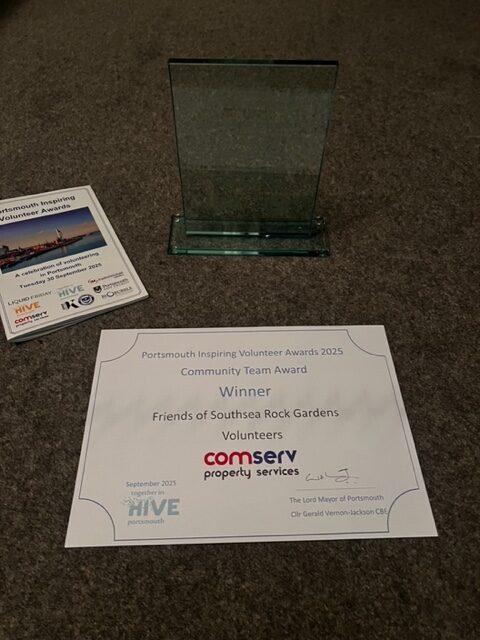 At the Portsmouth Inspiring Volunteer Awards 2025 held at the King’s Theatre on 30 September 2025, FSRG was honoured to be winner in the Community Team category. This award is a great tribute to our work and to the benefits we gain in return. Photos below courtesy Sue Denly, Alison Gisborne and HIVE Portsmouth.